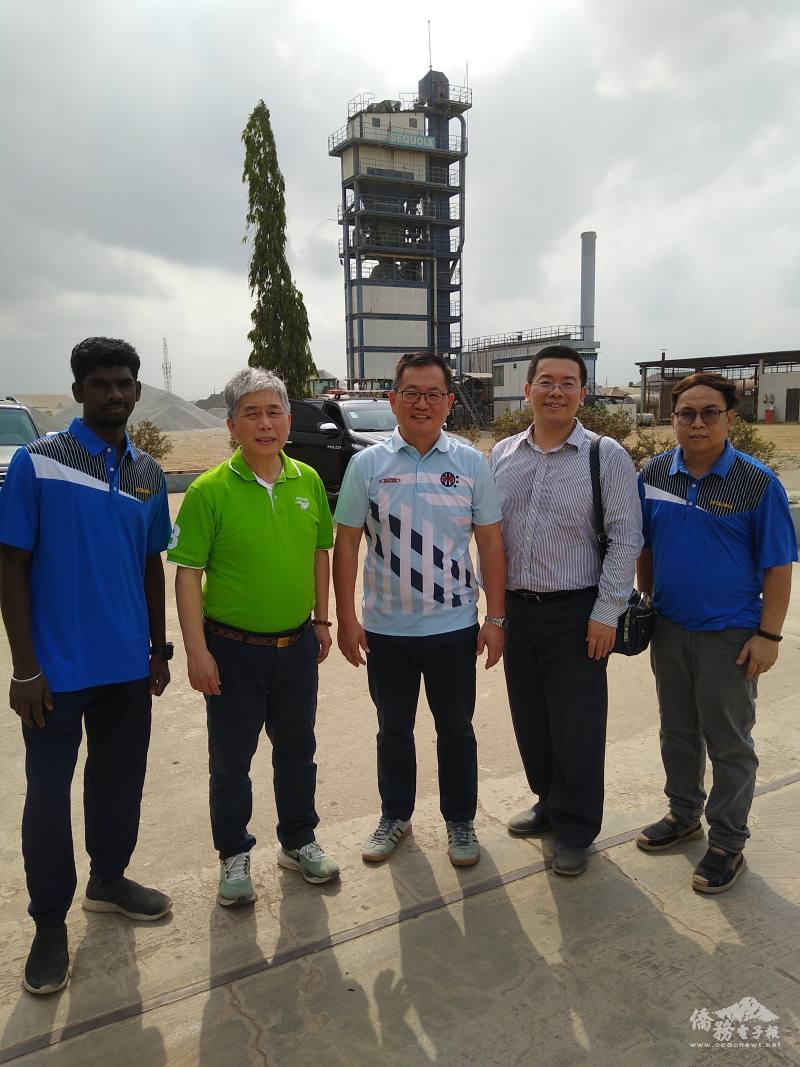 駐奈及利亞代表處僑務秘書詹前校(右2)、中華民國汽車商業同業公會全國聯合會理事長劉錦村(左2)拜會僑務委員吳孟宗(中)於奧貢州的瀝青廠