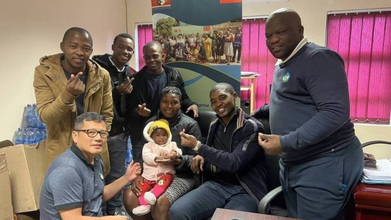 史瓦帝尼「婦女創業小額信貸循環基金」受益戶婦女瑪布札(Nomfundo Mabuza)於113年抱著她取名為「台灣」的女兒。(國合會提供)