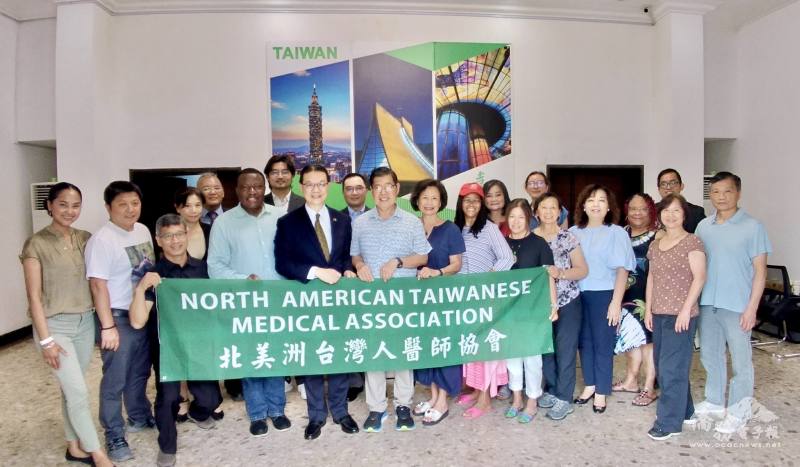 北美洲臺灣人醫師協會(NATMA)義診團4月12日拜會駐奈及利亞代表處,隨後赴代表劉翼平職務宿舍歡愉茶敘。僑務顧問陳淑芳、臺貿中心主任林志都、奈國臺商會副會長林子立及秘書長張智亮、代表處同仁等共同參加。