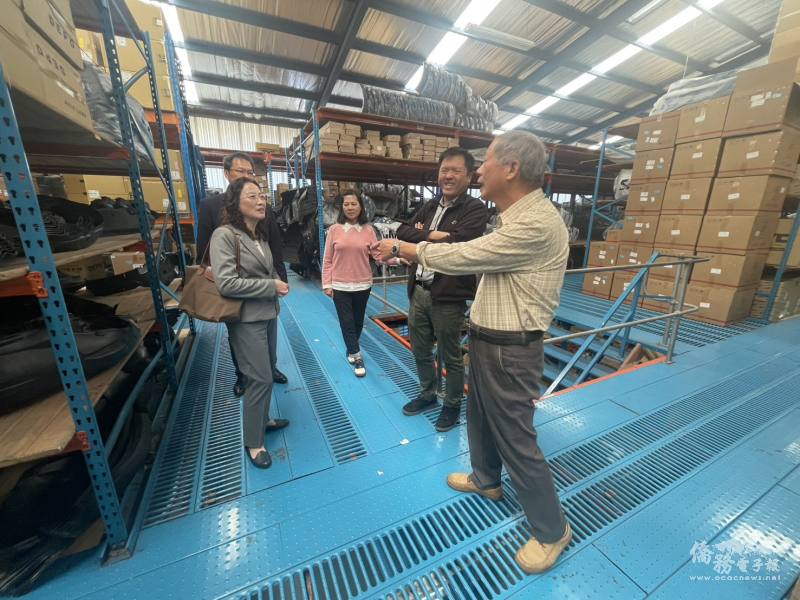 駐聖保羅辦事處處長陳瑩莉在負責人等人引導下參觀公司集貨倉儲及發貨中心