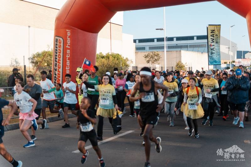 眾人不分種族語言共同起跑,跑者揮舞中華民國國旗,展現僑界積極參與在地活動、支持臺灣國際參與的行動力和在國際社會的友善形象