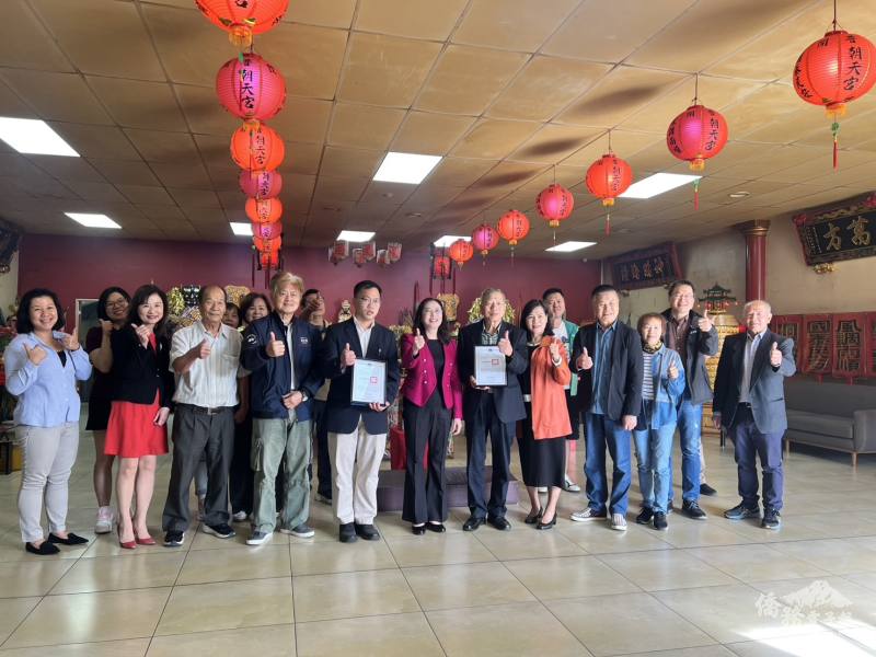 南非開普敦朝天宮5月18日舉行董事會交接儀式,駐開普敦辦事處處長陳瑩莉在僑務秘書李綺霞陪同下出席監交,與在場信眾共同見證朝天宮會務傳承。