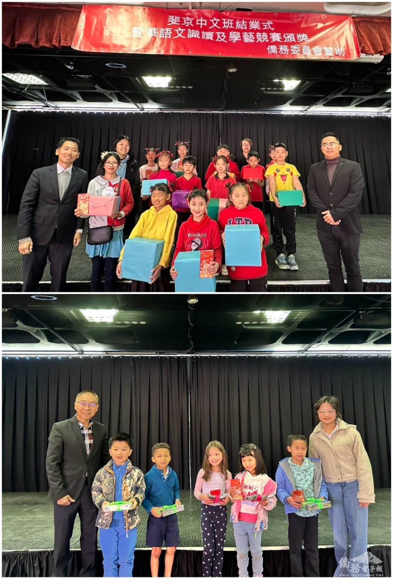 典禮中,斐京中文班學生們帶來精彩的才藝表演。中高年級學生表演相聲和太極,低年級學生則帶來戲劇與舞蹈,基礎班學生更以歌唱、唐詩朗誦及繞口令展現學習成果,現場氣氛活潑熱鬧。廖文哲及與會貴賓也受邀為各年級華語文識讀及學藝競賽的優勝同學頒獎,鼓勵他們在華語學習上的優異表現。