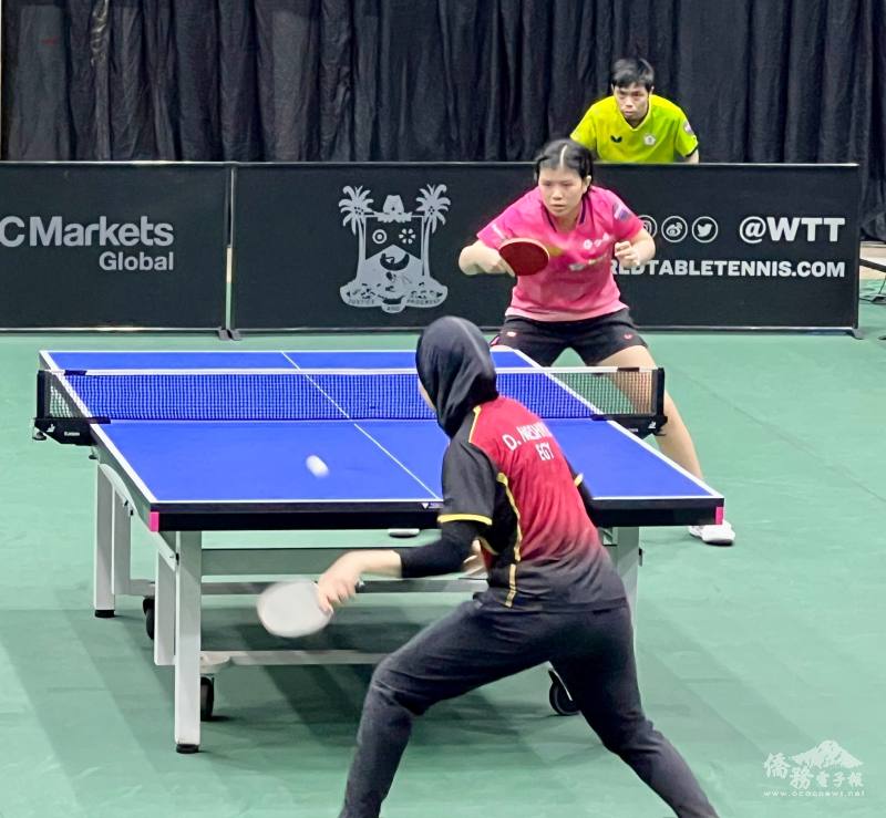 我國桌球好手葉伊恬(中)在WTT拉哥斯挑戰賽奮戰不懈