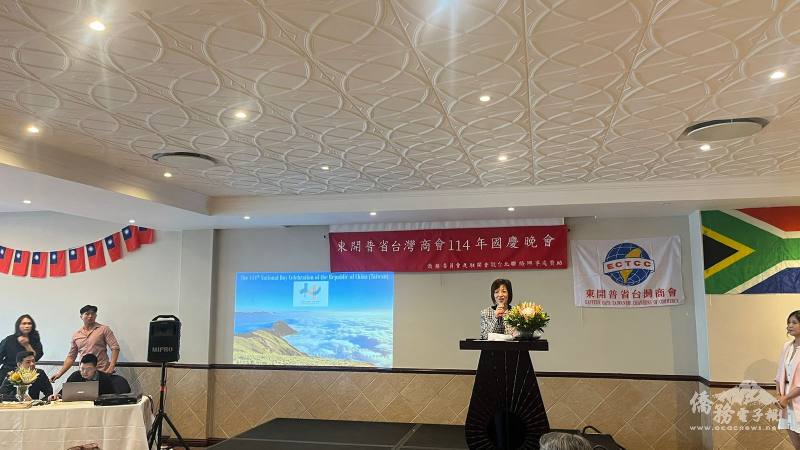 南非東開普省臺灣商會10月18於東倫敦市舉辦中華民國臺灣114年雙十國慶晚會。駐開普敦辦事處處長陳瑩莉應邀偕秘書蔡亦欣及僑務秘書曾權榮專程搭機前往出席,與當地約60位僑民及各界貴賓共同歡慶國慶。
