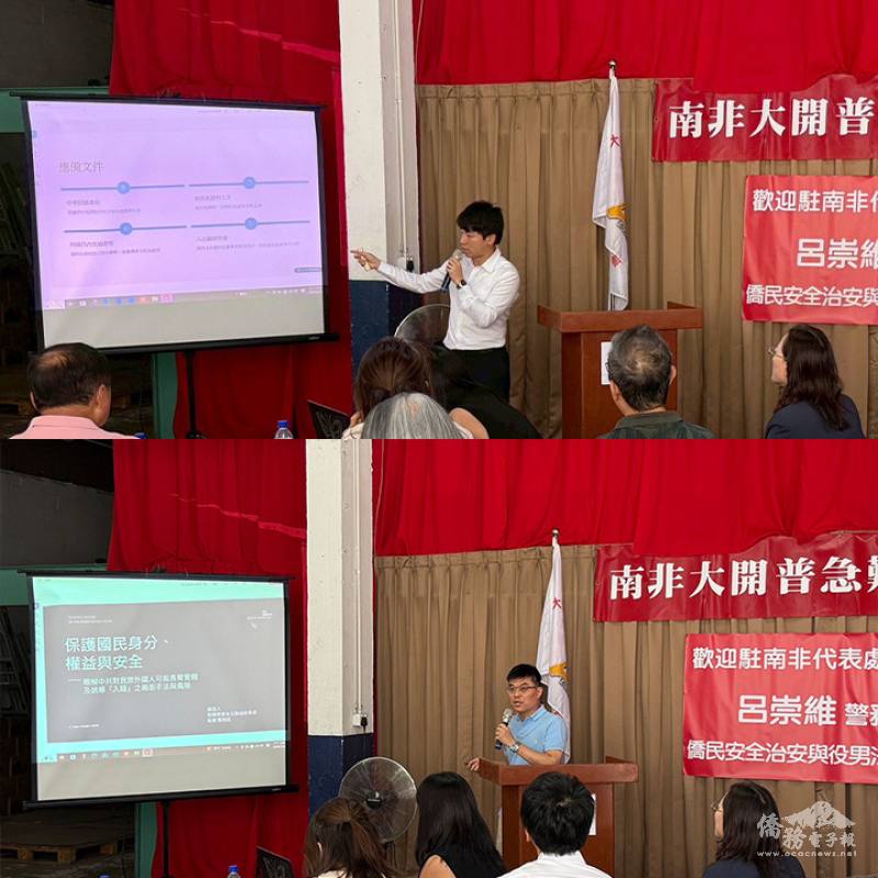 大開普敦地區僑界急難救助協會1 月 25 日舉辦3場系列講座,由會長李浩芳親自主持,駐開普敦辦事處處長陳瑩莉偕同仁全程參與,與現場僑胞分享社群安全、僑民役男新規定及中國「長臂管轄」等議題 。