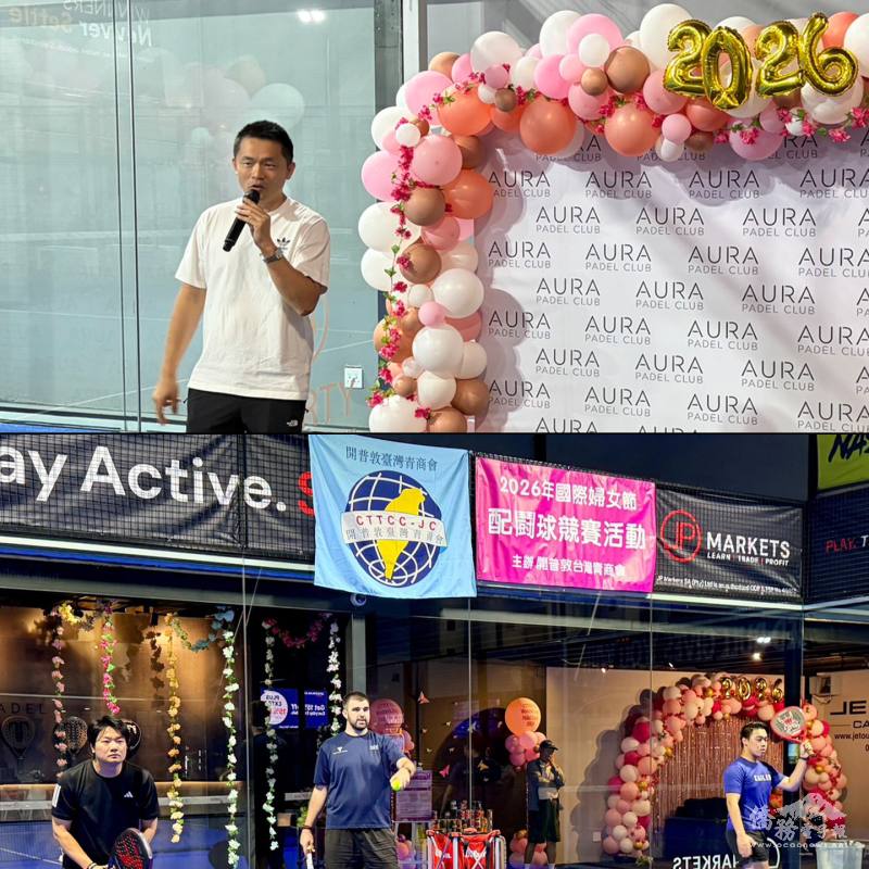 為慶祝 2026 年國際婦女節,開普敦臺灣青商會3月8日在 Aura Padel Club 舉辦「國際婦女節配鬪球(Padel)競賽活動」,吸引近80位僑胞、青商會員及當地友人踴躍參與,駐開普敦辦事處處長陳瑩莉應邀偕僑務秘書曾權榮等同仁參加,與僑胞在運動場上共度別具意義的節日。