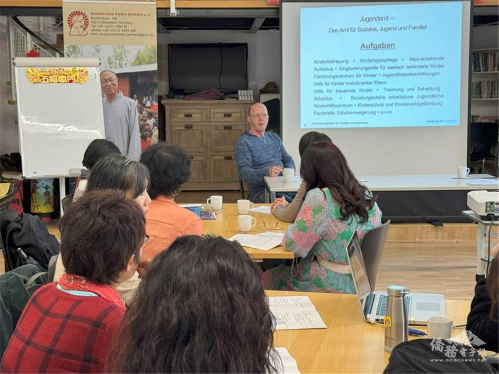 接著專題演講開始,由基督教Diakonie Düsseldorf (為德國知名社會、福利、醫療保健組織)的社會教育家、系統顧問、家庭暴力施暴者輔導員Stefan Hallen先生以《家暴的援救過程和德國社會機構的參與》為題,分享處理相關案件的實務經驗,並開放提問。