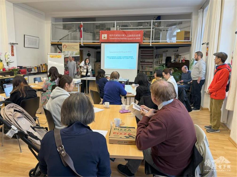 德國北威區臺灣人急難救助協會於4月27日下午在杜塞道夫舉辦會員大會及急難救助案例分享活動;駐法蘭克福辦事處組長林宏穎應邀出席,與杜城臺灣婦女會會長彭瑞怡、阿彌陀佛關懷中心德國協會會長戴炳輝等25位鄉親及德國社區民眾同場交流。