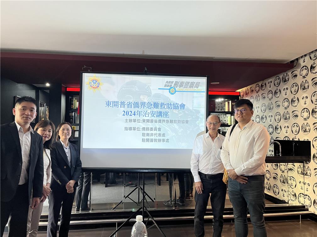 為提高僑界安全意識及加強風險管理,在僑務委員會、駐南非代表處及駐開普敦辦事處共同指導及協輔下,南非東開普省僑界急難救助協會於113年4月21日在該省伊莉莎白港市舉辦治安宣導講座,除邀請駐南非代表處警政秘書呂崇維擔任講座外,當地警官並應邀與會交流;另駐開普敦辦事處處長陳瑩莉在僑務秘書李綺霞及秘書蔡亦欣陪同下,特別自開普敦前來參與。