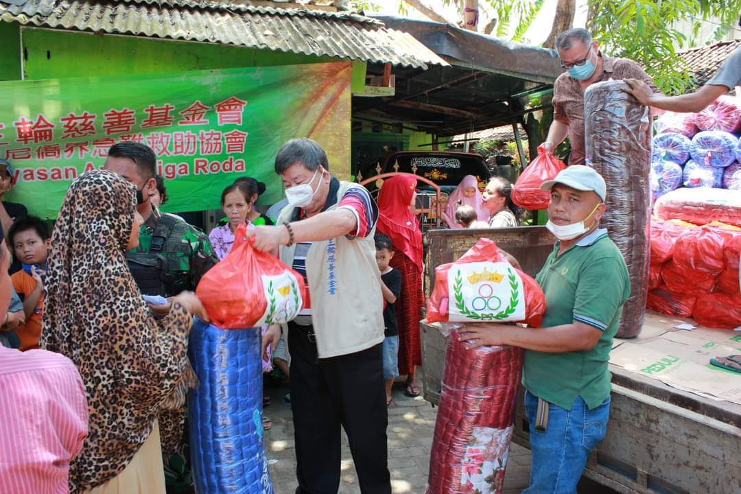2022年3月上旬印尼萬丹省Serang地區豪雨成災,三輪慈善基金會/印尼僑界急難救助協會由執行長鐘文燐、執行委員游秋中等人前往訪視受災社區瞭解居民需求後,發起籌措熱心臺商捐贈相關生活物資。鐘執行長於3月13日帶隊前往發送350份床墊、毛毯、米粉、拖鞋等居民急需生活物資,獲得當地村長及居民感謝來自臺灣僑界的愛心。
