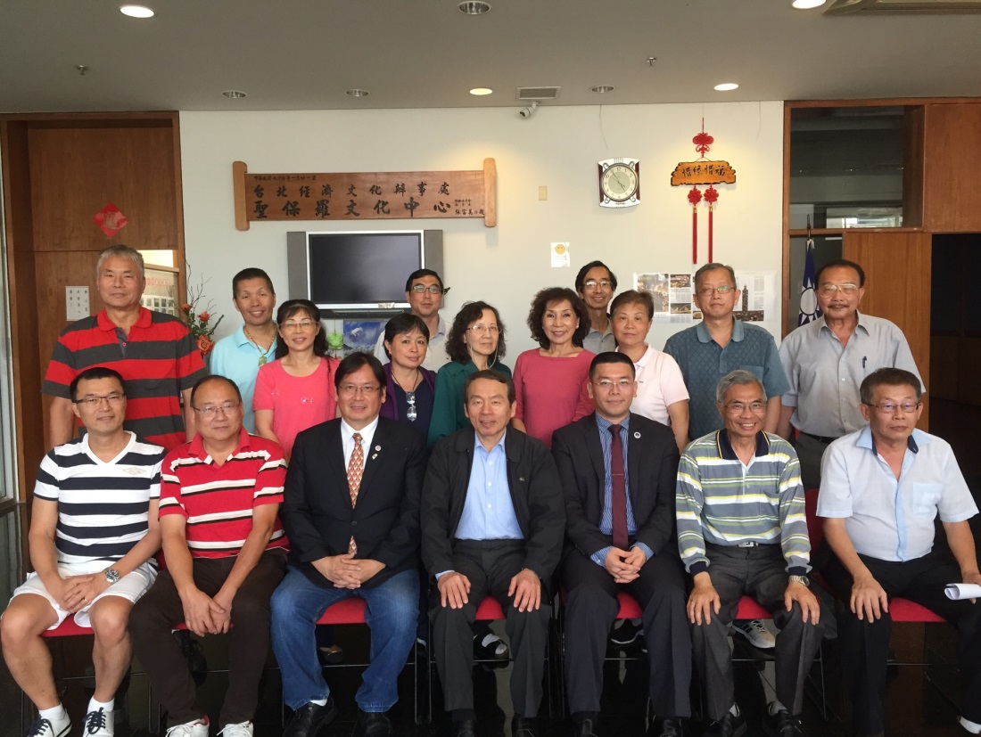 中華民國駐巴西聖保羅地區僑界關懷救助協會重要幹部、會員與王啟文處長(前排中)、詹前校主任(前排右3)合影留念。
