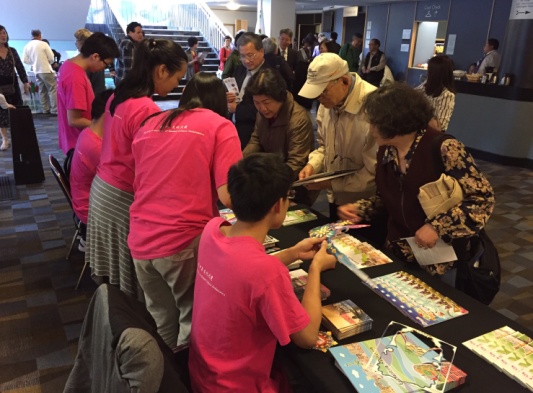 FASCA學員擔任北美地區臺灣傳統週活動志工,負責演出前的文宣品攤位布置、發送、說明各類臺灣特色文宣品,介紹臺灣各地目前具有特色之觀光景點