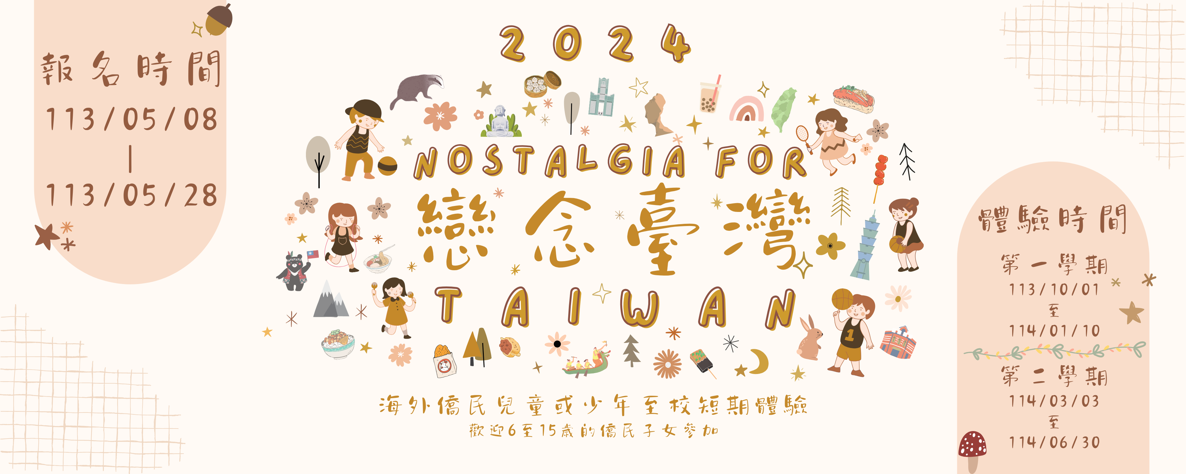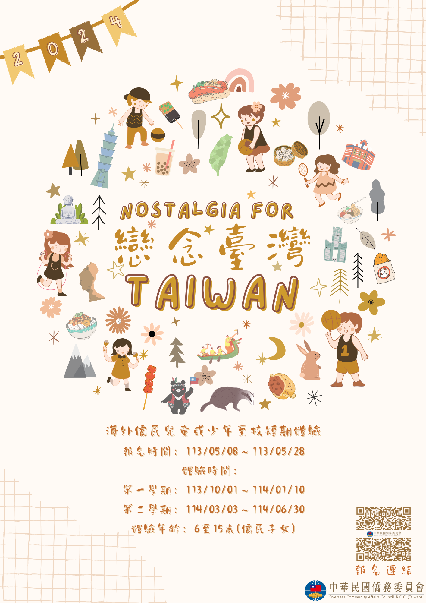 為使短期返國探親或辦事之海外僑民能安心將6至15歲子女帶回臺灣,增加其子女對臺灣文化習俗之認識,爰賡續辦理「戀念臺灣-海外僑民兒童或少年至校短期體驗計畫」(以下簡稱本計畫),協助海外僑民兒童或少年,藉與國內同年齡兒童或少年共同學習的機會,領略臺灣風土及人情之美,進而認同臺灣文化,鏈結對臺灣的情感。