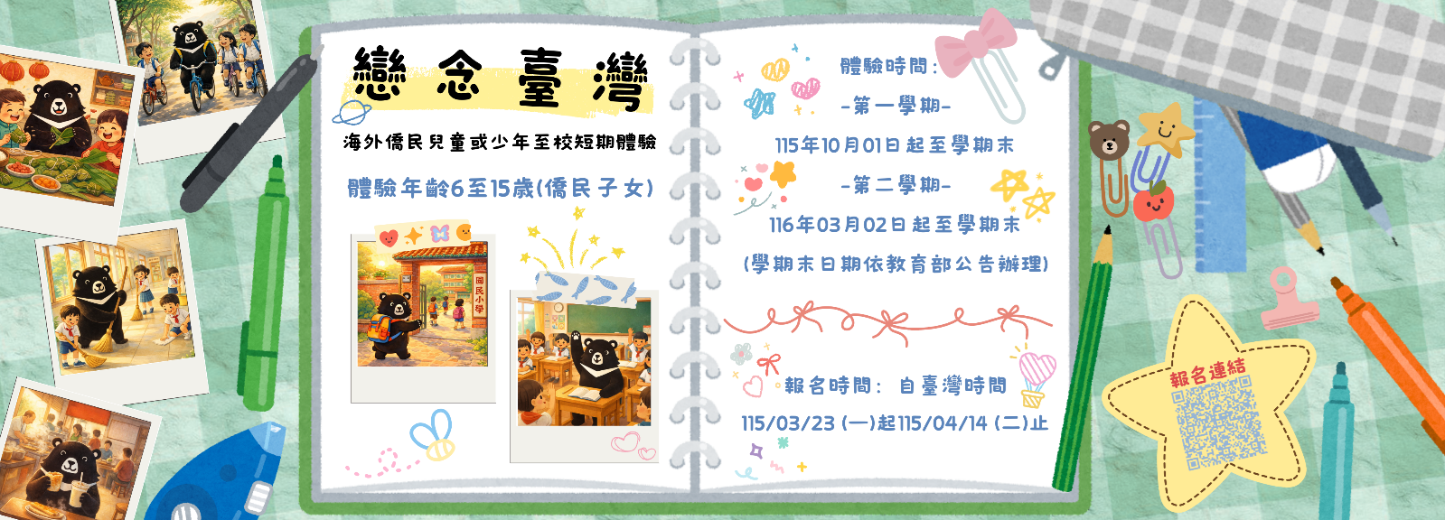 115學年度戀念臺灣-海外僑民兒童或少年至校短期體驗計畫。