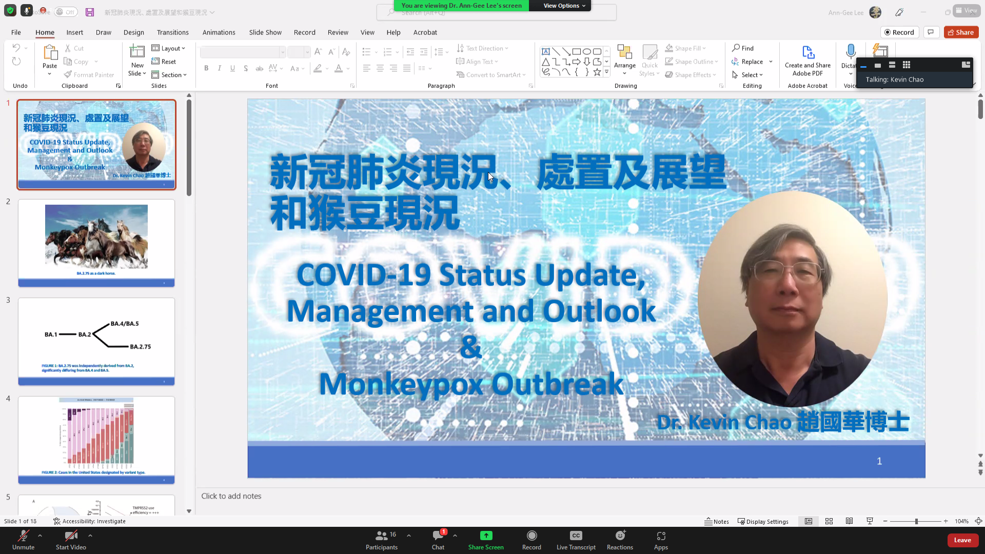 劉惠吟表示,斯郡急難救助協會之宗旨為提供來自臺灣旅外國人及僑胞意外時之幫助,協會並擴大協助範圍至社區人士,在疫情期間期與社會大眾共同渡過挑戰,包括捐贈口罩、快篩劑給社區、老人安養機構、醫療機構等,本次講座邀請在防疫醫學領域相當專業的趙博士,期讓會員僑胞及社區對新冠及猴痘有進一步的瞭解,並能更有效地防疫。當日由加州公共衛生部醫院緊急準備聯絡官趙國華詳細說明COVID-19 BA.1、BA.2、BA.4、BA.5、BA2.75等變種之不同、當前疫情狀況、猴痘入侵的機制以及預防的措施等。