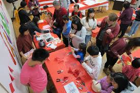 學員參與「揮毫迎新春」活動,學習拓印版畫及剪紙。