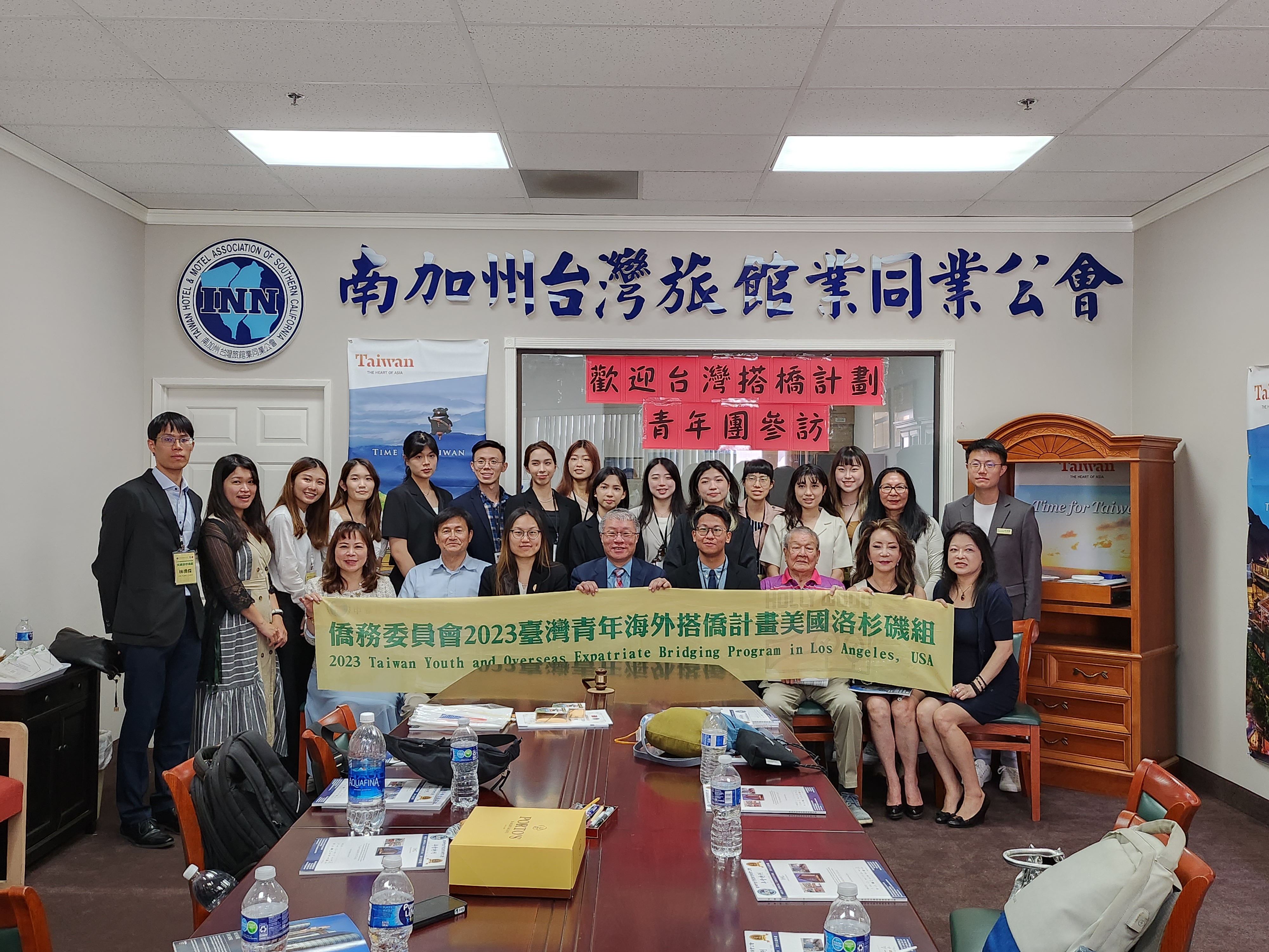 112年臺灣青年海外搭僑計畫美國洛杉磯組16名學員於本年7月27日至8月4日赴美國洛杉磯參訪見習,活動期間除拜會駐洛杉磯辦事處及於洛杉磯華僑文教服務中心見習僑務工作內容外,並拜訪當地僑團(羅省中華會館、大洛杉磯臺灣會館)、僑臺商企業及組織(Jl Organics LLC有機肥料工廠、Ni Ching Hsiang Fish Farm魚菜農場、洛杉磯臺美商會、南加州臺灣旅館業同業公會)等;另參加南加州中文學校聯合會夏季研討會開幕式、南加州中文學校聯合會第47屆年會晚宴、FASCA橙縣分會7月月會、FASCA洛杉磯分會學員座談、擁抱生命擁抱愛慈善活動、南加州臺灣旅館業同業公會第49屆暑期在職訓練營結業典禮晚會,以及參訪華埠服務中心、華埠圖書閱覽室、華美博物館、加利福尼亞大學河濱分校、河濱市文化古蹟Mission Inn博物館等。