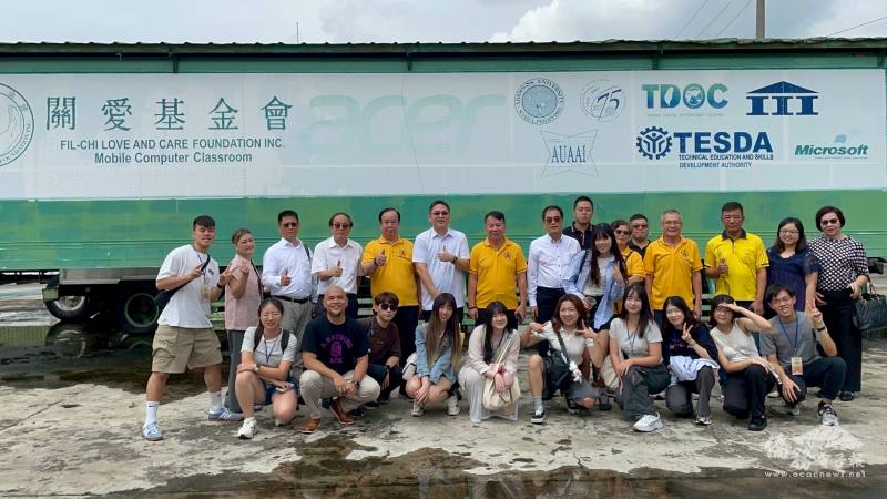 訪團於菲律賓關愛基金會「電腦教室行動車」前合影,了解在地數位公益與教育推廣之成果