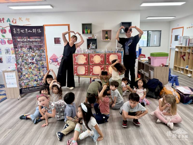 西北區台灣同鄉會會長宋欣怡(左)與陳雨禾(右),帶領小朋友進行肢體互動,課堂氣氛熱鬧溫馨