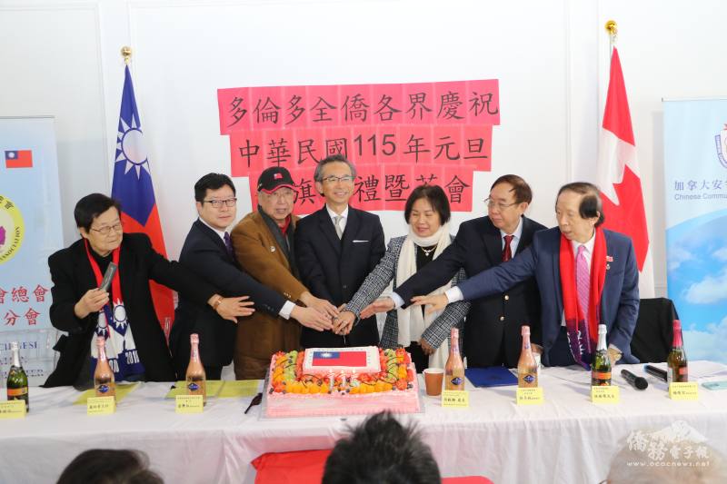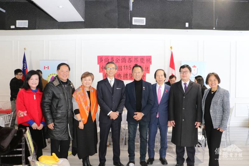 為慶祝中華民國115年元旦,華僑協會總會多倫多分會與安省中華總會館於1月1日聯合舉辦「多倫多全僑元旦升旗典禮暨茶會」。多倫多龍岡親義公所主席趙挺秀特別出席支持,駐多倫多辦事處處長梁毅鵬率全體同仁出席,多倫多文教中心主任藍柏青、副主任許彩鳳、臺貿中心主任周之蓉,以及多倫多榮光會、世華工商婦女企管協會多倫多分會、臺灣客家同鄉會等十餘個僑團,約150位僑胞共襄盛舉。