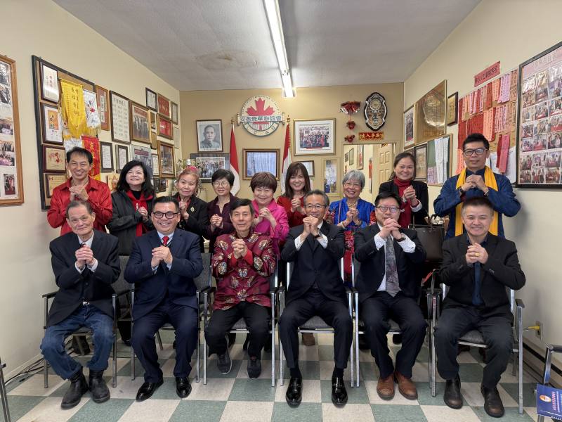 駐多倫多辦事處處長梁毅鵬2月22日農曆春節期間率副組長吳秋月、多倫多文教中心主任藍柏青、副主任許彩鳳,在僑務諮詢委員陳勇儀陪同下,至多倫多巿區華埠向多倫多龍岡親義公所、安省昭倫公所及安省寮華聯誼會拜年。