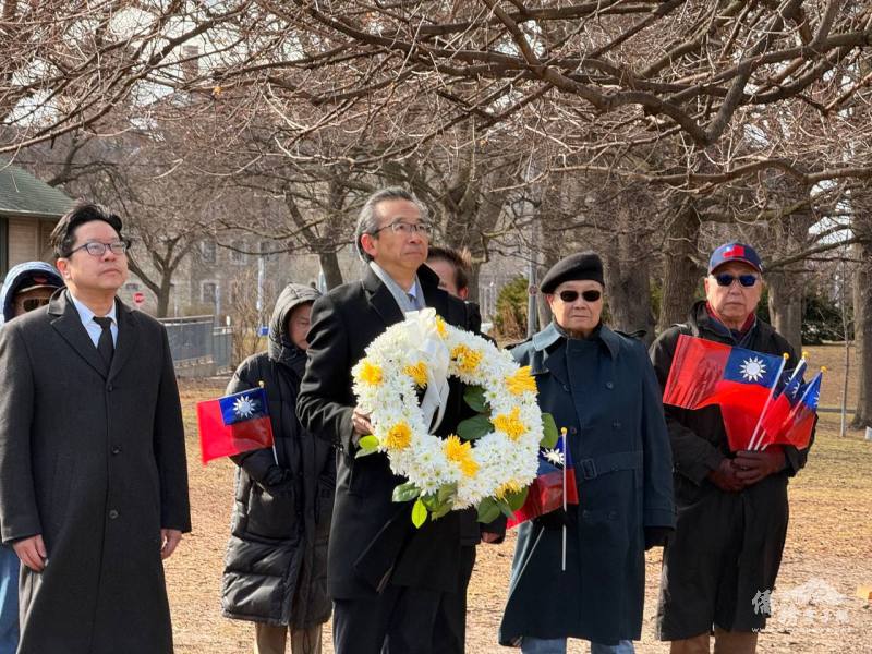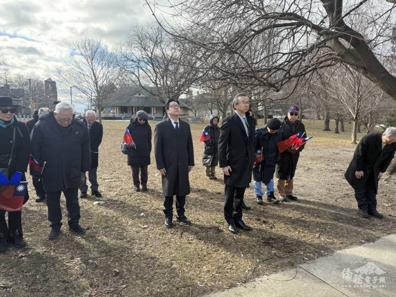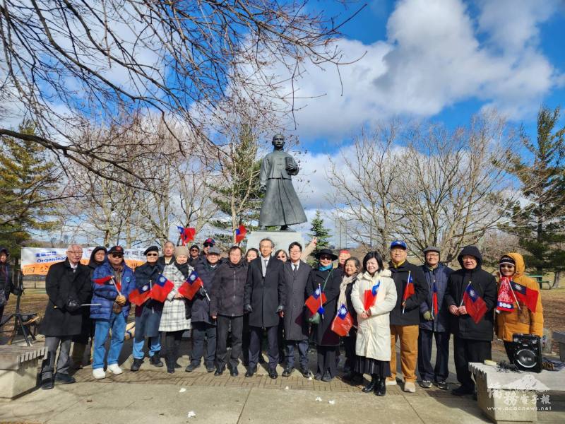 當日多倫多寒風冷冽難耐,許多長輩仍堅持到場同聚致敬,至國父孫中山先生銅像前高唱國歌、獻花及行三鞠躬禮致敬。花籃在強風中屢被吹倒又重新扶起,象徵僑界堅定不移的支持與參與;梁毅鵬偕辦事處副組長吳秋月、多倫多文教中心主任藍柏青、副主任許彩鳳應邀出席紀念活動,與會人士尚有僑務委員簡許邦伉儷、僑務諮詢委員麥錦鴻、王珠娥、金聲白、僑務顧問黃乃文、安省中華總會館前主席亦為僑務顧問主席王元培及施善美,以及華僑協會總會多倫多分會成員等社團負責人及僑界代表近30人參加。
