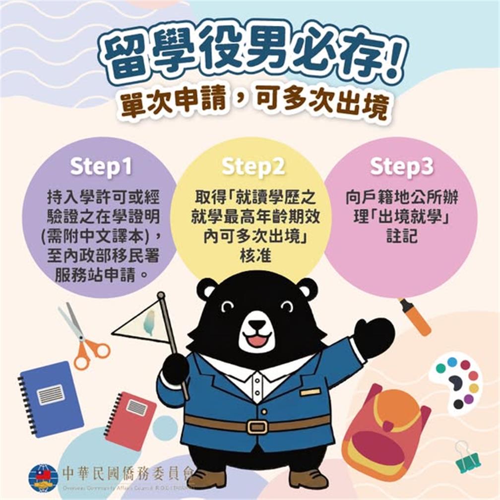 以就學身分出境,不用每次都申請「役政用華僑身分證明書」