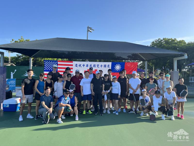 為慶祝中華民國114年雙十國慶,珊瑚泉中華文化協會於10月4日及5日上午,假佛州珊瑚泉市舉辦「國慶盃匹克球比賽」,吸引眾多僑界人士及當地友人熱烈參與。駐邁阿密辦事處處長周啟宇偕僑務秘書黃士聰出席,與珊瑚泉中華文化協會會長陳運全及南佛州各族裔愛好匹克球的參賽好手,一同慶賀雙十國慶,並為賽事揭幕。