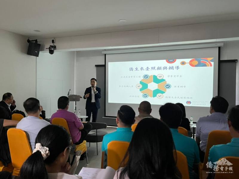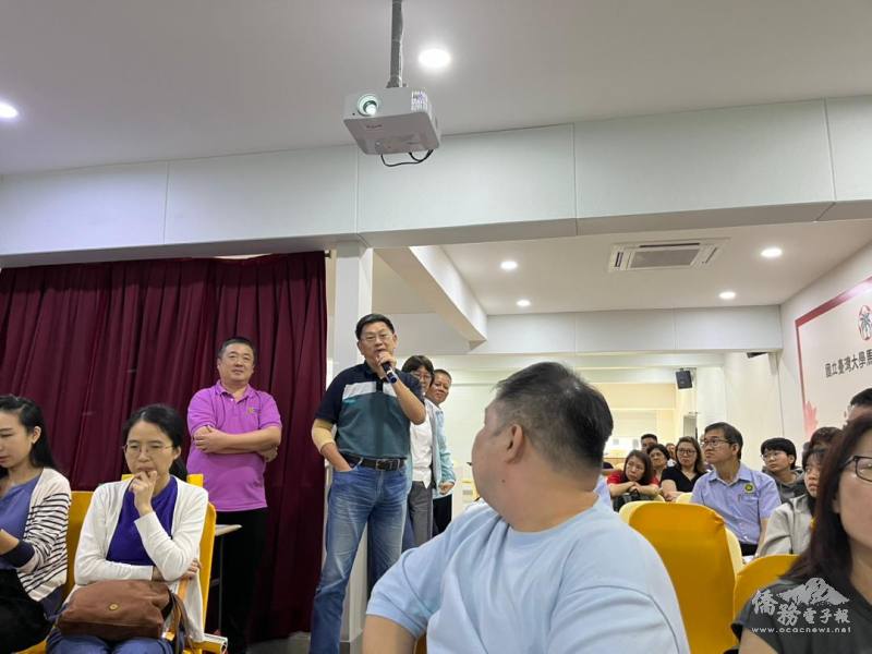 駐馬來西亞代表處僑務組組長廖建勛向與會師長說明僑委會從育才到留才的完善照護方案,打造「友善國際人才生態系」