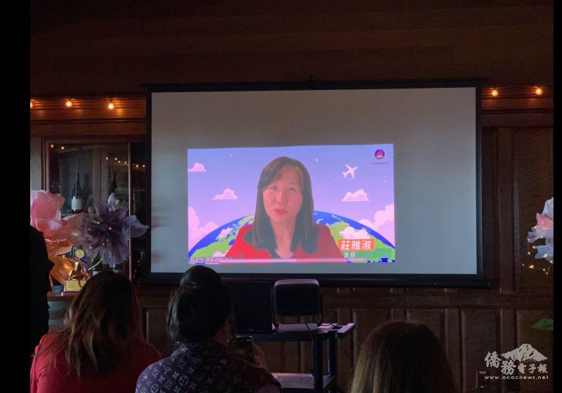 金山灣區文教中心主任莊雅淑透過影片向世華姊妹問候,並分享「i僑卡」的多元便利服務,同時介紹僑委會規劃於2026年推出的僑台商產業培訓研習班及參訪團,鼓勵會員依自身產業需求踴躍參與,深化專業實力並拓展國際連結。