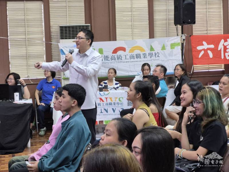菲華文教中心主任莊博智以英文向與會者介紹僑務委員會「3+4產學攜手合作僑生專班」及「四年制產學合作學士班」。