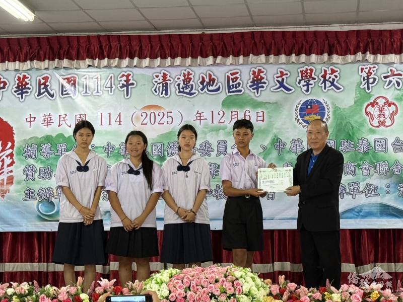 清邁地區華文學校聯合會會長王世璽致詞時表示,華藝文競賽與漢字文化節已成為泰北僑校最具代表性的年度文化活動。在僑務委員會指導,以及僑界長期支持下,各校在正體字教學及華語教育品質提升方面成果顯著。他感謝師長長年付出,也勉勵學生透過競賽深化語文能力,延續華語文與中華文化的傳承使命。