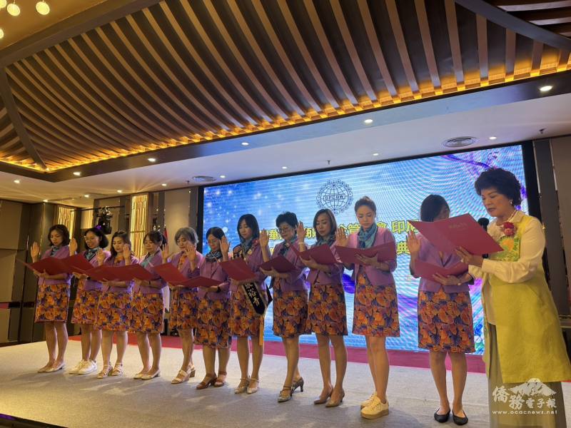 副總會長鄭美滿(右1)主持世界華人工商婦女企管協會印尼分會第二屆理監事宣示就職宣言