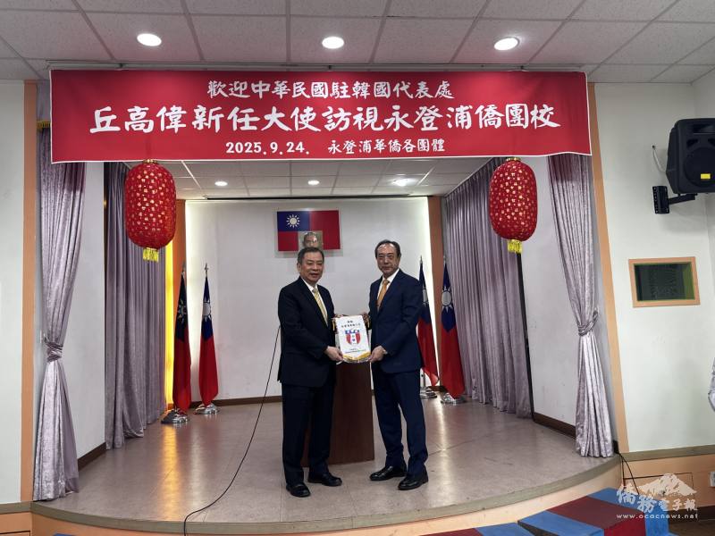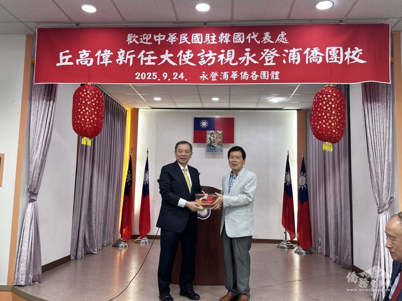 丘高偉致詞中提及自己外交生涯首派釜山,當時就對韓國華僑社會堅毅支持中華民國臺灣留下深刻印象。經歷三十多年,因緣際會再次回到韓國服務,他期盼與各地僑團校齊心合作,為韓國僑民創建更美好的未來。因應9月28日教師節即將到來,他也致贈臺灣風味禮品,以感謝永登浦華僑小學教師長年辛勞,讓正體華文教育在韓國札根。