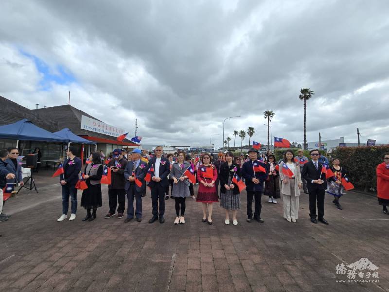 為慶祝114年雙十國慶,紐西蘭臺灣華夏協會10月10日舉行升旗典禮暨慶祝茶會。活動由理事長林涵婷主持,駐奧克蘭辦事處處長陳詠韶偕館員丶臺灣華夏榮譽理事長范慶榮丶楊慶𤋮丶僑務委員施振嘉及僑務榮譽職丶僑團負責人丶僑胞鄉親約200人參加。
