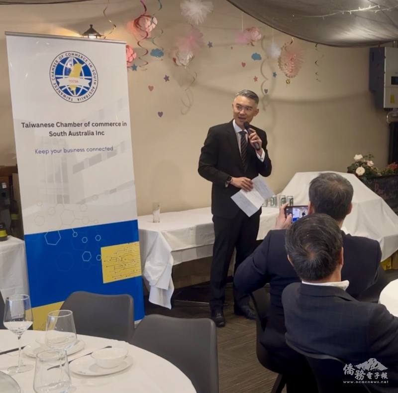 南澳州台灣商會會長劉育志感謝各界支持,並向與會嘉賓簡報自今年6月成立以來的成果,以及未來的會務規劃與展望。呂明澤致詞肯定劉育志積極帶領商會參與世界台灣商會聯合總會及大洋洲台灣商會相關活動,展現南澳臺商的活力與潛力,也為區域經濟注入嶄新動能。