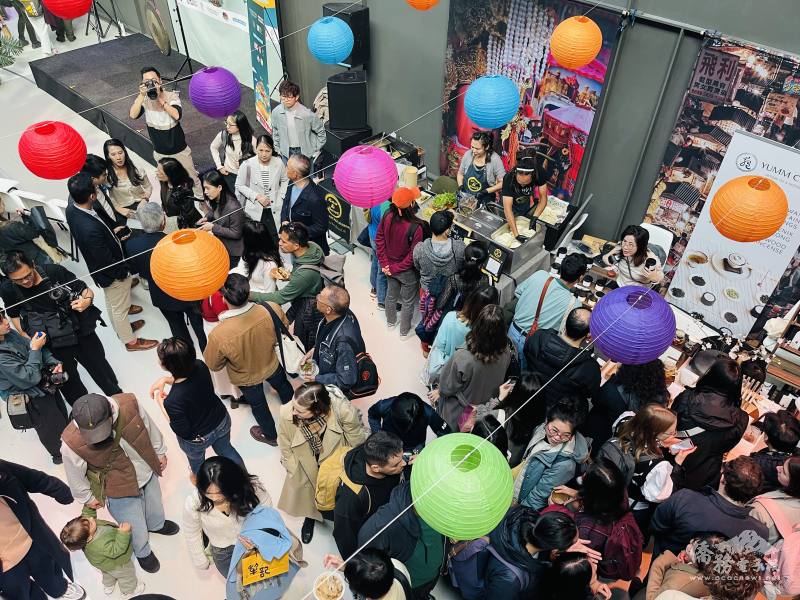 另為營造場地濃厚臺味氛圍,主辦方也邀請空間設計師洪宜伶設計成「臺灣廟口」形式,佈置著燈籠、掛畫並融入夜市套圈圈及抽詩籤等遊戲,讓與會民眾親身體驗臺式廟會熱鬧氣氛。會場同時結合僑委會「揪團辦i僑卡享好康」推廣宣介攤位,並提供漁夫帽、紋身貼紙及手機吊繩等小贈品,成功吸引逾百位僑胞現場響應。