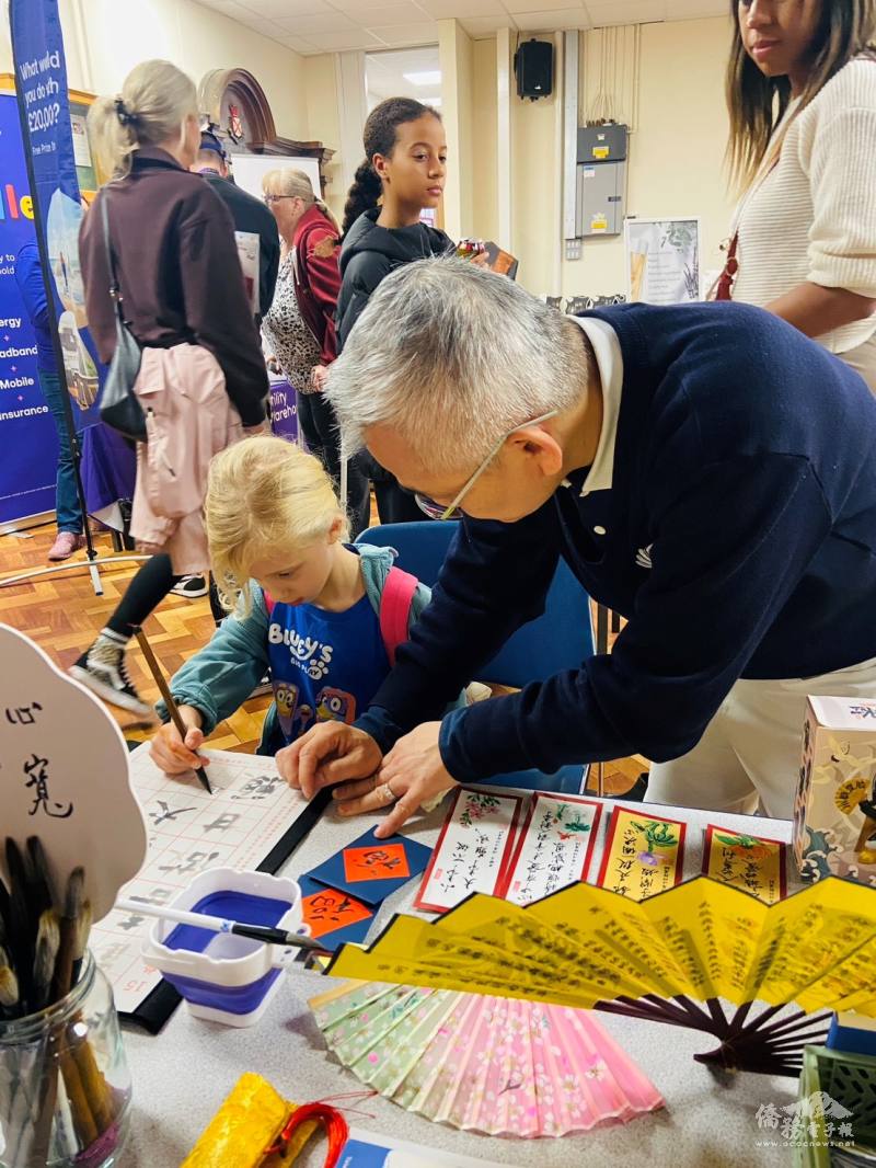 孩子們對中文書寫充滿好奇,在現場學習如何寫書法