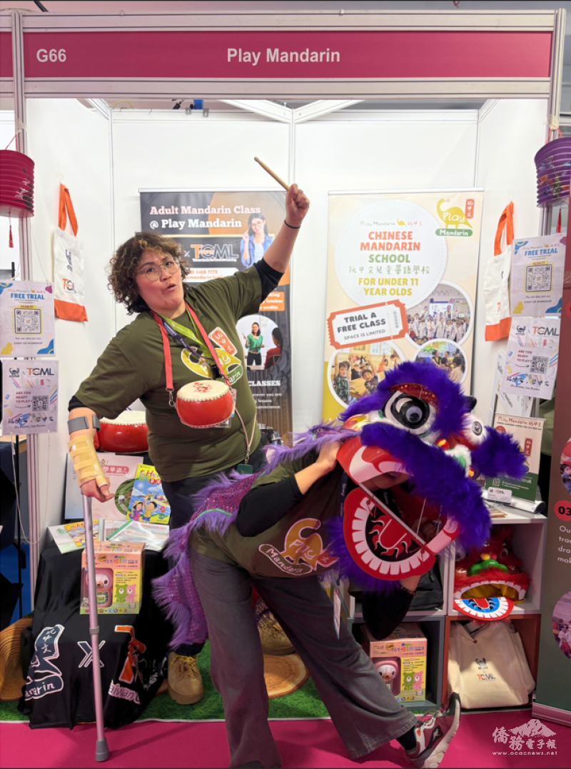 展覽期間,「玩中文」展位成為最有溫度的文化窗口。校方特別運用僑務委員會提供的臺灣年曆、精緻春聯以及《來!學華語》等優質教材,設置互動式文化展攤。現場舞獅表演及文化體驗活動,讓當地家長與孩童在認識正體中文的同時,也能親身感受臺灣節慶的魅力。
