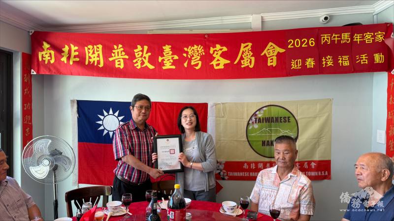 開普敦臺灣客屬會2月15日在 Mama's Kitchen 舉辦「丙午馬年客家迎春接福活動」。駐開普敦辦事處處長陳瑩莉偕僑務秘書曾權榮等同仁應邀出席,活動結合客家文化與新春佳節,內容精彩豐富,現場洋溢著節日的喜慶與鄉親的溫情,氣氛溫馨熱鬧 。
