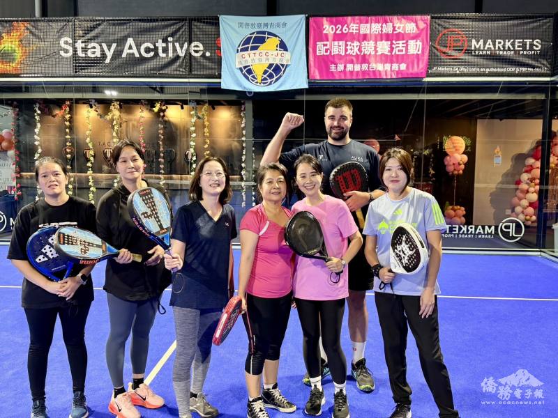 為慶祝 2026 年國際婦女節,開普敦臺灣青商會3月8日在 Aura Padel Club 舉辦「國際婦女節配鬪球(Padel)競賽活動」,吸引近80位僑胞、青商會員及當地友人踴躍參與,駐開普敦辦事處處長陳瑩莉應邀偕僑務秘書曾權榮等同仁參加,與僑胞在運動場上共度別具意義的節日。