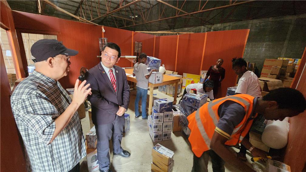 駐奈及利亞代表處僑務秘書詹前校12月8日先後拜會台僑商界產業Q-Link、BOSCON、永拓等3家公司,實地參觀倉儲動線、生產線製作,並交流瞭解經營現況。詹秘書另也致贈台灣茶葉禮盒與總統府福袋,表達歲末關懷祝福。