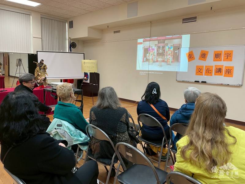 波士頓慈濟人文學校臺灣華語文學習中心(Taiwan Center for Mandarin Learning,TCML)11月22日在波士頓文教中心舉辦「走進廟宇(Entering Temples:Stories of Faith & Community」之文化講座,由TCML主任宋永麒博士介紹臺灣廟宇文化,內容包括臺灣廟宇的歷史背景、建築特色、建築風格、功能與活動、擲茭(Casting Divination Blocks)等各種儀式及習俗,並說明如何分辨寺(Temples) 或廟(Shrine)等,更介紹「大甲鎮瀾宮媽祖遶境」此一頗富盛名的宗教文化活動。