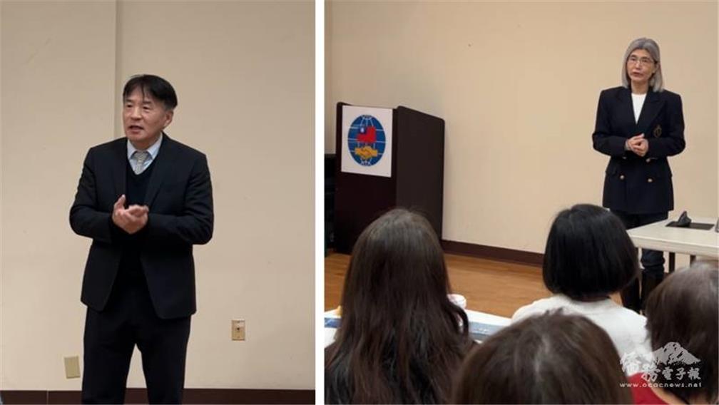 文教中心主任高家富與駐波士頓辦事處教育組組長黃薳玉介紹華文教育資源