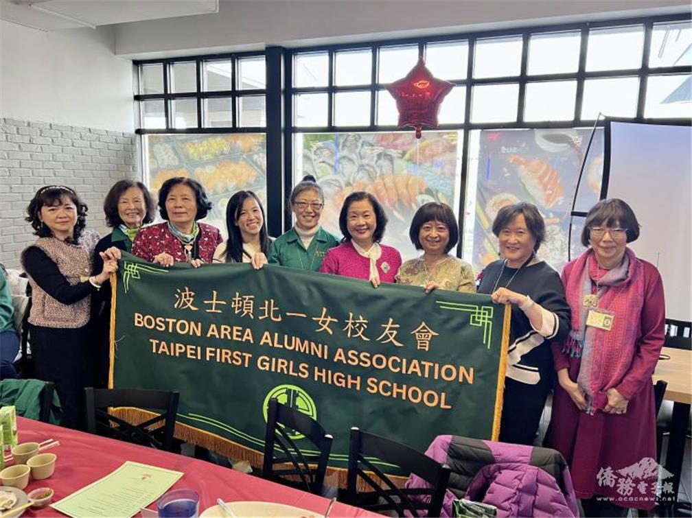 參與年終餐會的校友會成員與波士頓文教中心主任高家富合影