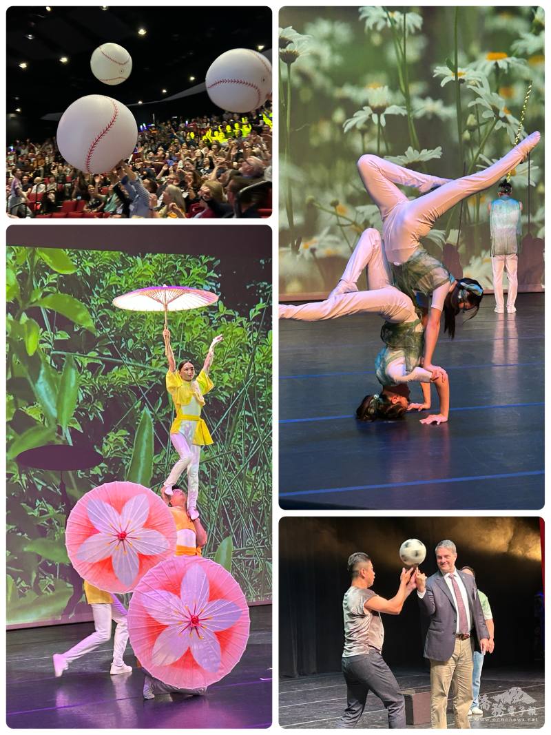 這場文化演出的團員個個身懷絕技,以音樂與舞蹈展現力與美的融合,將傳統雜技與特技巧妙結合現代創新元素,並運用大型變化多端的投影與富有張力的樂曲,打造身歷其境的視聽體驗,充分呈現臺灣文化的多元風貌與蓬勃活力。活動中魔術及與觀眾互動的表演使演出高潮迭起,觀眾掌聲與驚呼聲不斷,壓軸的「臺灣尚勇」及「Team Taiwan 挺臺灣」更掀起全場高潮,氣氛熱烈,活動在滿堂喝采中劃下圓滿句點。