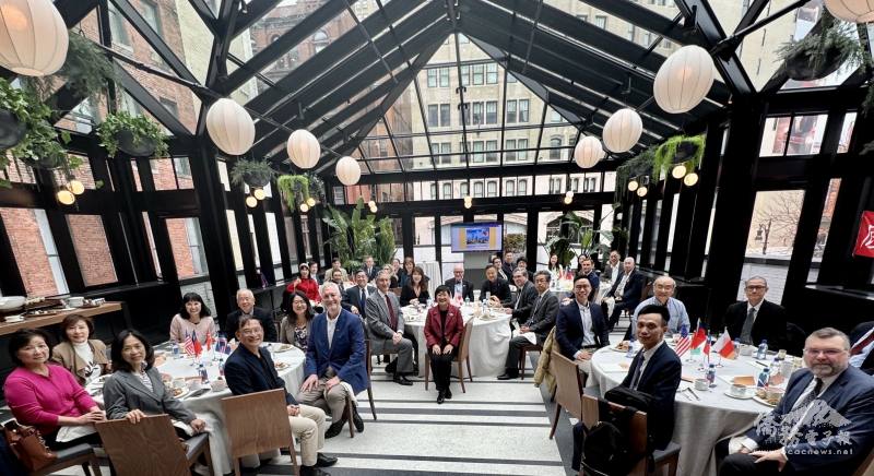 中午時分,由密西根領事團成員盧蔓菁主持餐會,邀請密西根領事團主席暨英國榮譽領事Nicholas Stasevich及日本、加拿大、義大利總領事、墨西哥副領事,以及韓國、波蘭、比利時、智利、瑞士、土耳其與冰島等國的榮譽領事出席午宴,逐一發言分享各國與臺灣經貿關係及文化交流經驗,表達對臺灣的支持與肯定。