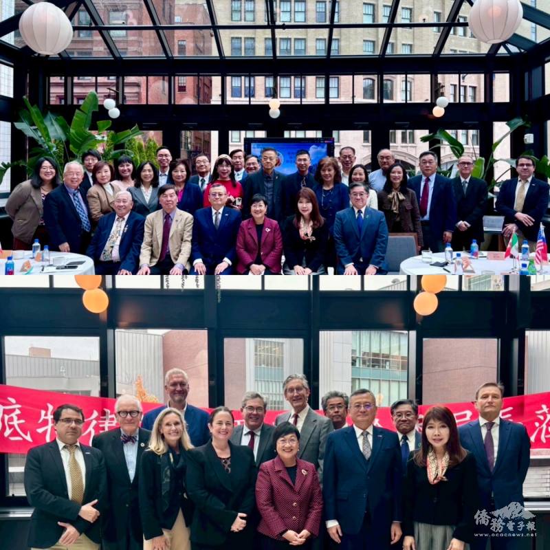 徐佳青分別與密西根僑務榮譽職及各僑團校負責人(上圖)、密西根領事團合影(下圖)