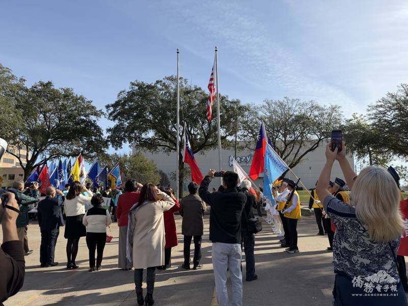 休士頓全僑2026年元旦升旗典禮於1月1日上午10時,在僑教中心廣場舉行。活動由中華公所主辦,榮光會及僑社十餘個社團共同參與。駐休士頓辦事處處長蕭伊芳、文教中心主任王盈蓉、僑務委員劉秀美、陳建賓、陳逸玲、李雄等僑務榮譽職人員,以及超過200位僑胞出席,在飄揚的國旗之下,以滿滿熱情迎接嶄新的一年。